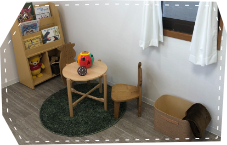 - プライバシーへの配慮と、リラックスできる空間を..との思いで、半個室となっております。緊張しにくい様に、病院らしさを敢えて排除し、お子様にも馴染みやすいインテリアにしてみました。親子診療室でお子さんと一緒に診療が受けられます。お子さんとお父さん・お母さんが一緒に受診することもできますので、ぜひご家族で受診にお越しください。